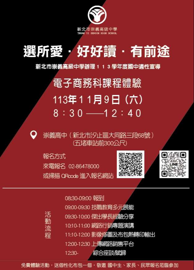 (二)新北市崇義高中google表單報名https://docs.google.com/forms/d/1qZK2yLlgvN4L MDxESufv0l9zCXzjJt1W9q7l_LaaoE/edit