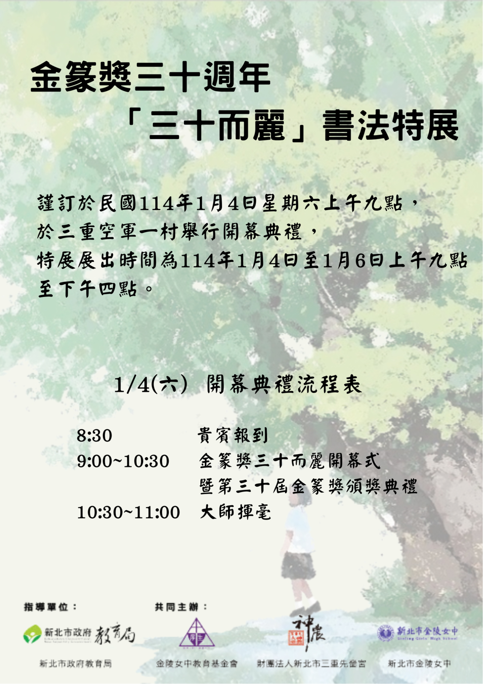 一、活動名稱:金篆獎三十週年三十而麗書法特展。