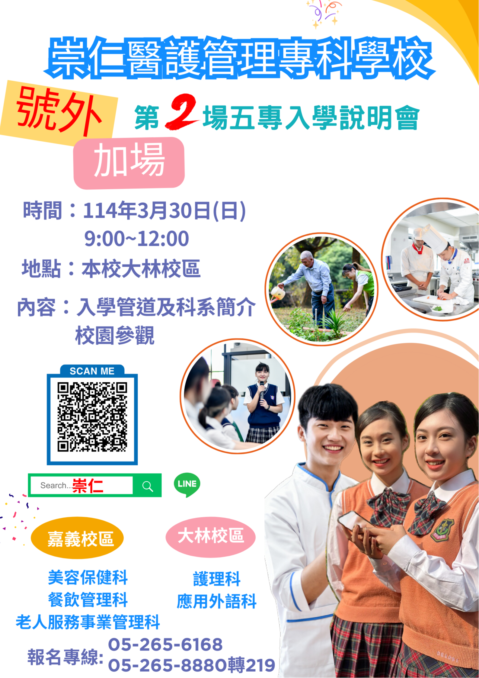 四、聯繫方式:(05)2656168 / (05)2658880分機219招生中心。