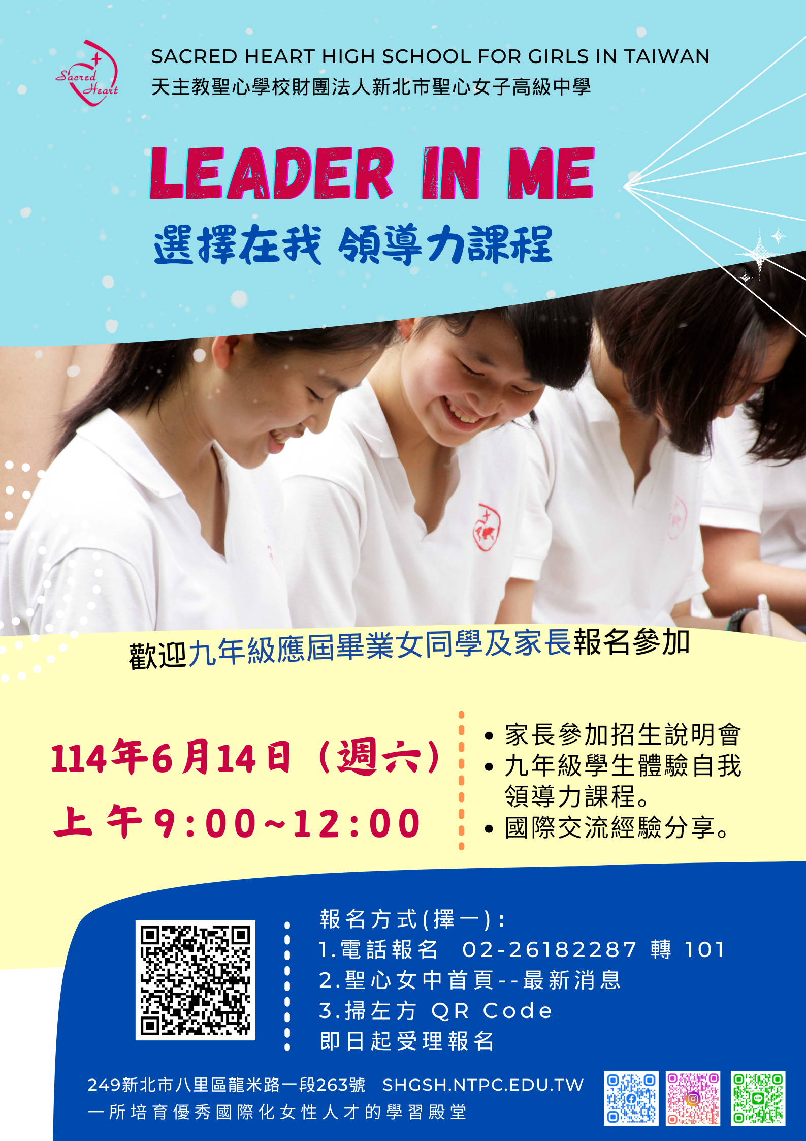 (二) 或至聖心女中首頁www.shgsh.ntpc.edu.tw—最新消息報名。