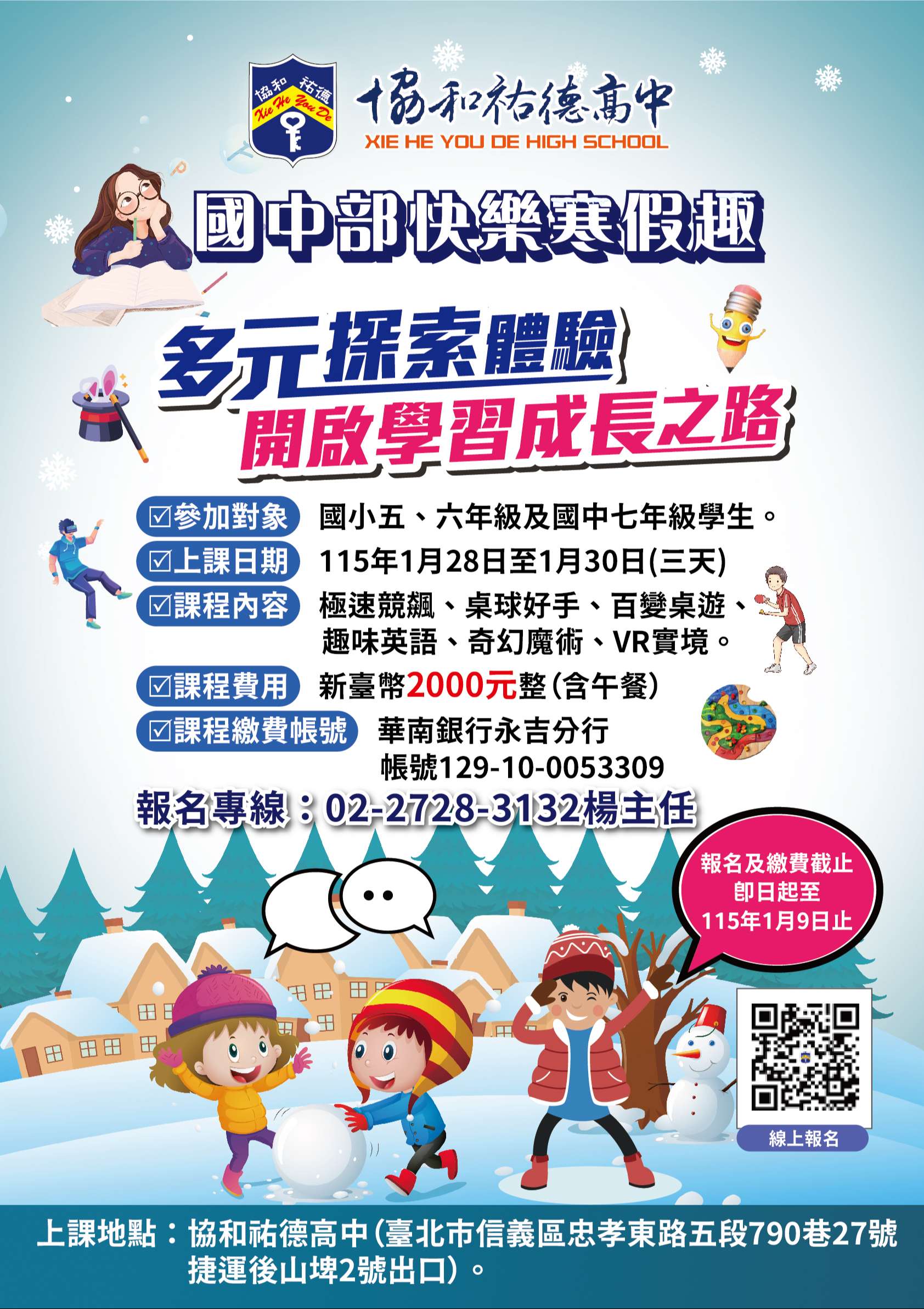 七、活動場地:臺北市協和祐德高中(臺北市信義區忠孝東路五 段790巷27號,捷運後山埤站2號出口)報名專線:(02) 2728-3132 楊主任