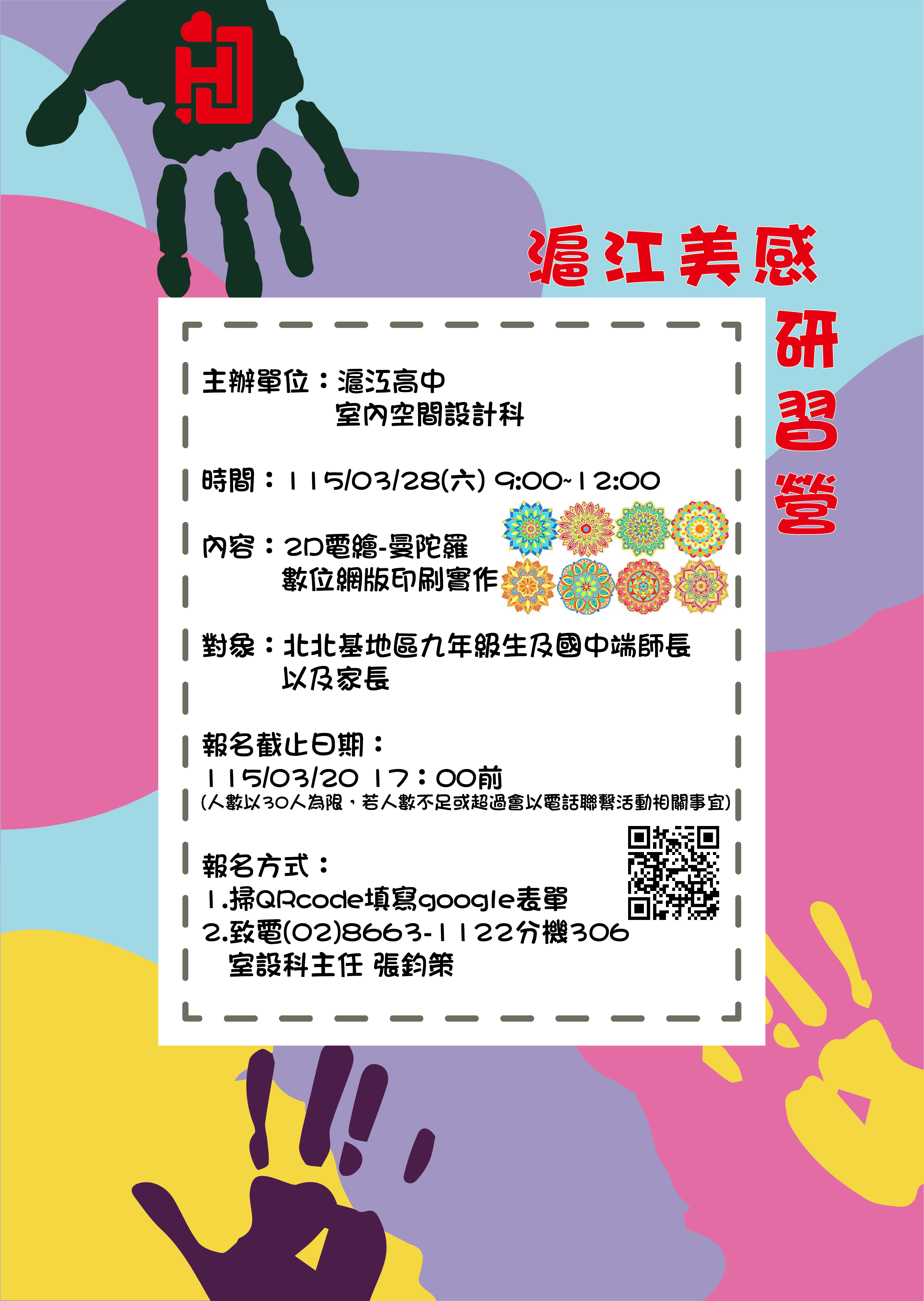 一、 為協助國中學生探索設計職群發展,本校室內空間設計科規劃**「2D電繪曼陀羅」**體驗課程,運用 Adobe Illustrator 軟體引導學生從基礎「點、線、面」出發, 創作療癒系曼陀羅圖騰,體驗數位設計之美。