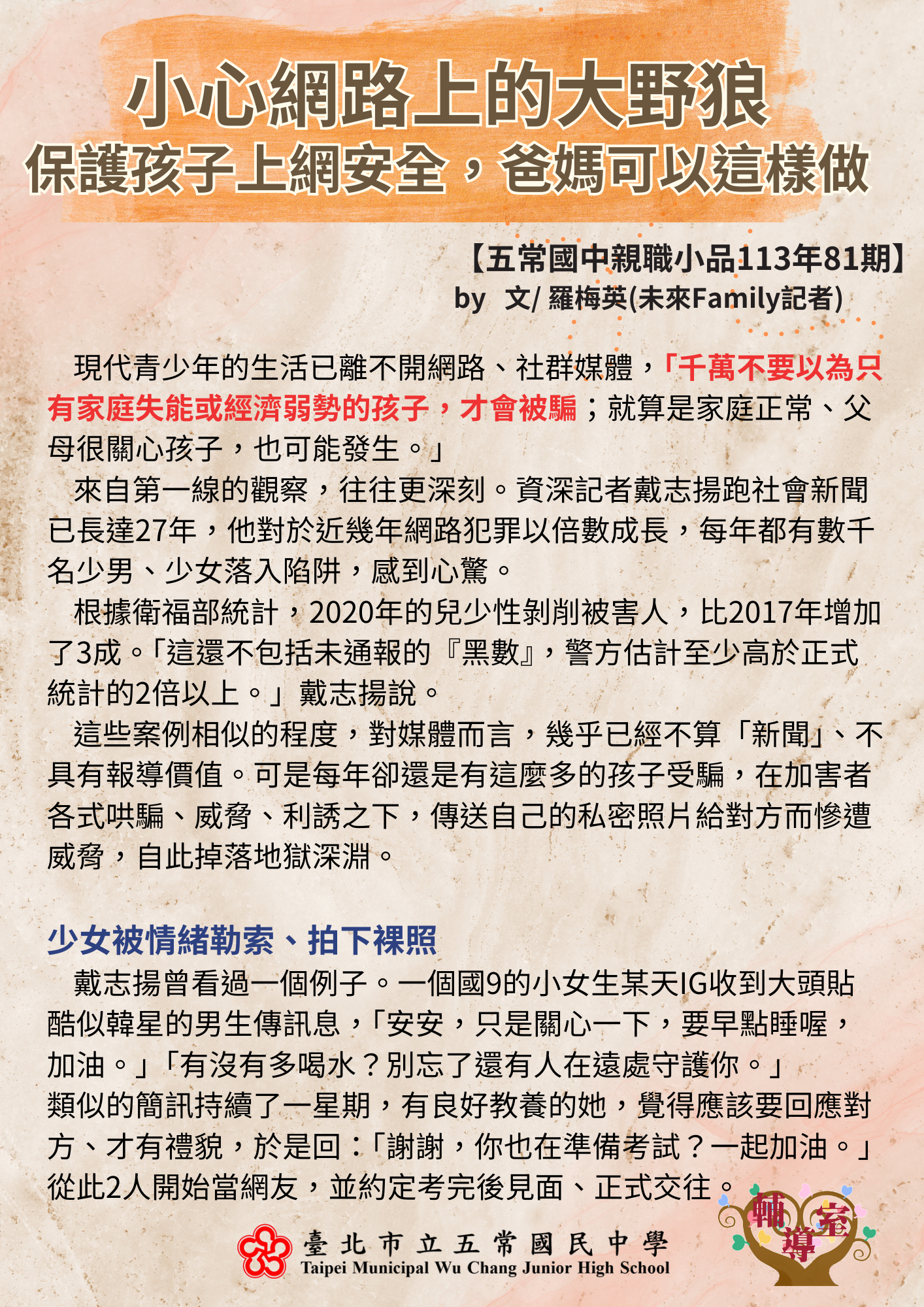 五常親職小品 113年第81期 小心網路上的大野狼-保護孩子上網安全,爸媽可以這樣做