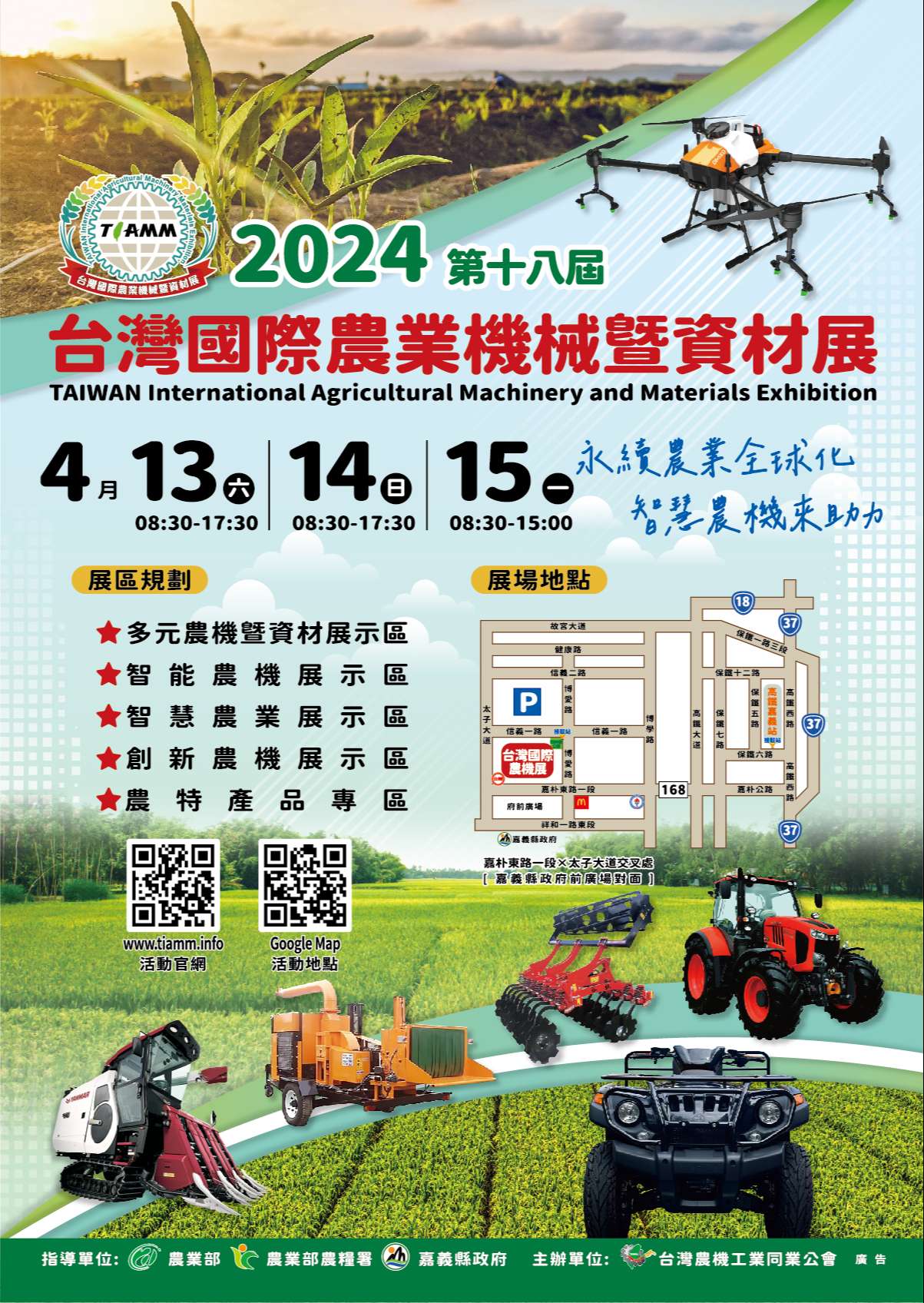 二、活動內容:展出智慧農業展示區、智能農機展示區、創新 農機展示區、多元農機暨資材展示區及農特產品展示區。