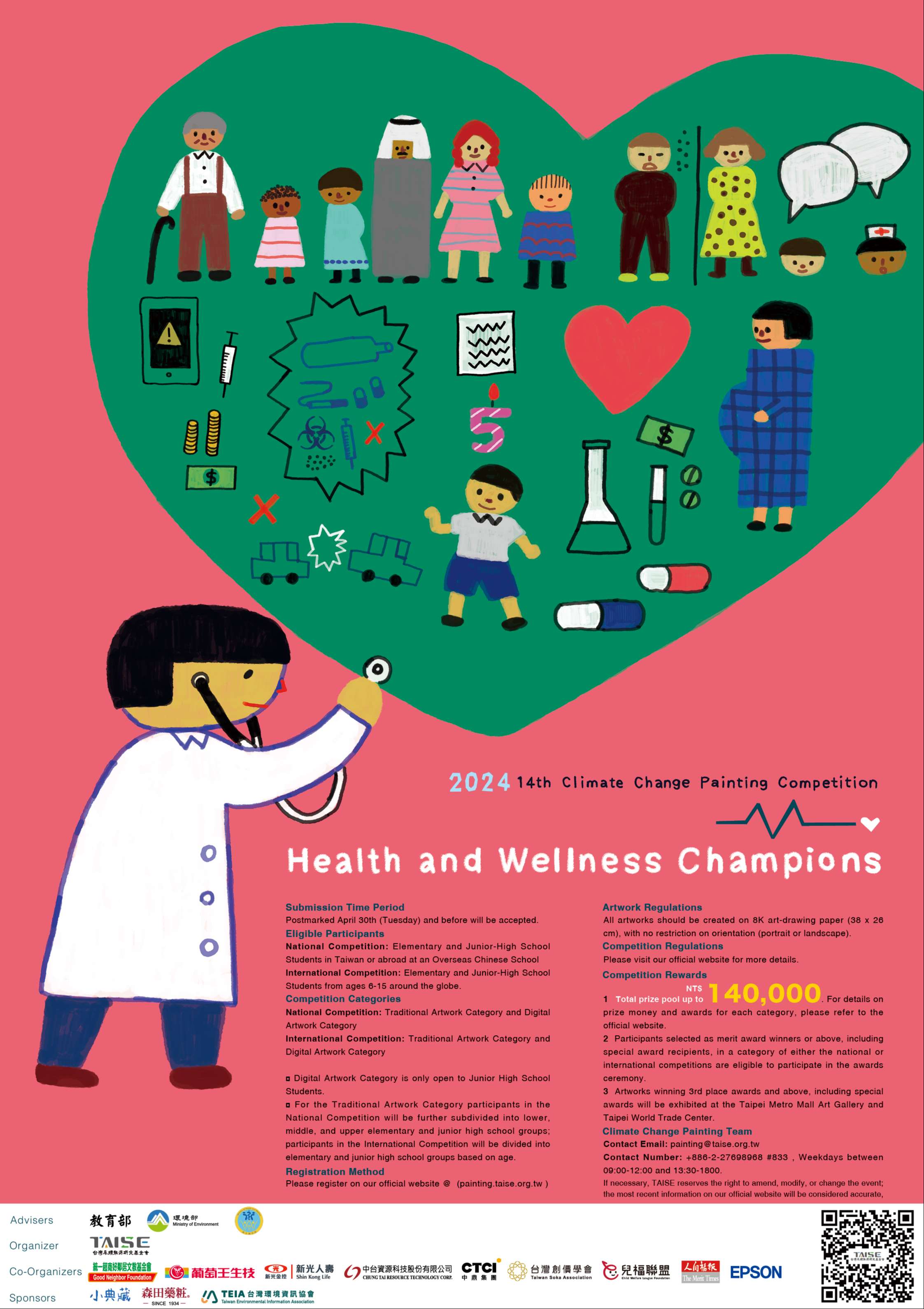 二、第14屆為呼應聯合國永續發展目標(SDGs)第3項「健康與 福祉」,以「健康小大使」為主題,提升師生對傳染病的 認知並共同探討如何預防傳染疾病;同時學習健康的生活 方式、情緒管理等等,亦須充分了解各項子目標的內容, 攜手邁向健康、平安生活。此繪畫比賽也呼應第13項,採 取氣候行動並提升大眾相關意識。