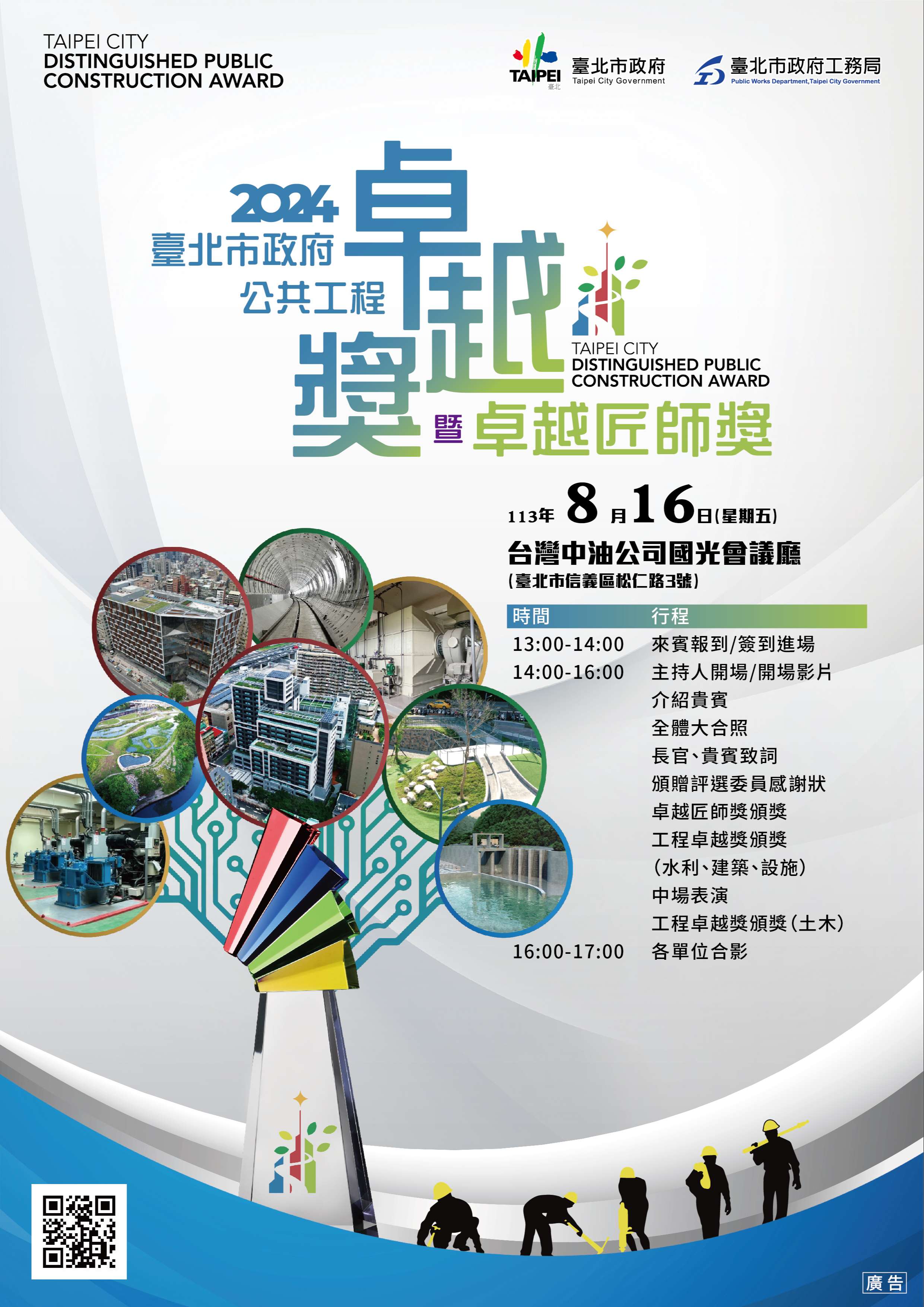 函轉有關「113年度臺北市政府公共工程卓越獎暨卓越匠師獎頒獎活動,協助公告周知一案。