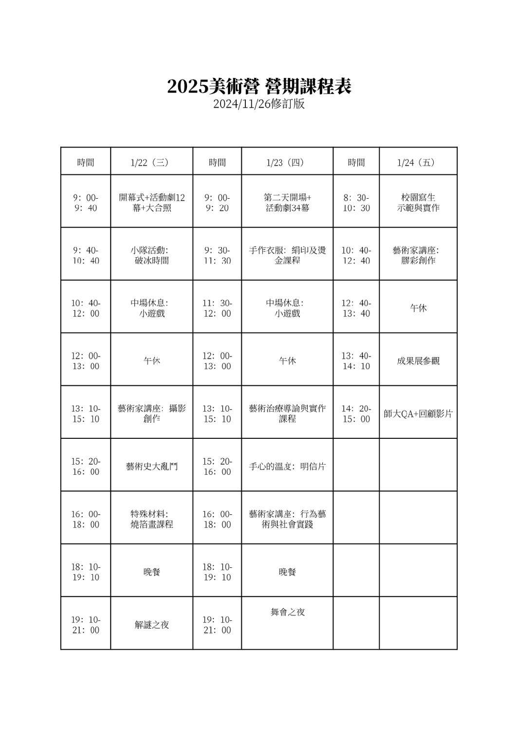 一、旨揭活動預計114年1月22日至114年1月24日於本校美術系