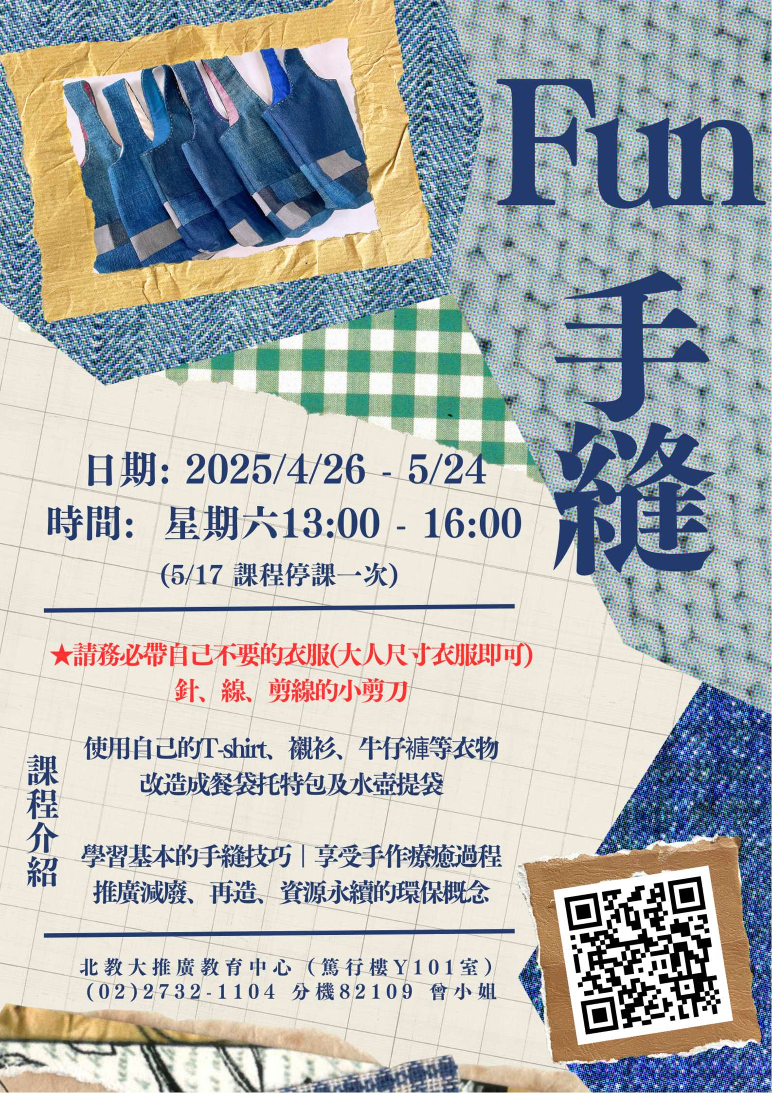 日起開放報名,課程資訊如下:生活藝術系列—Fun手縫
