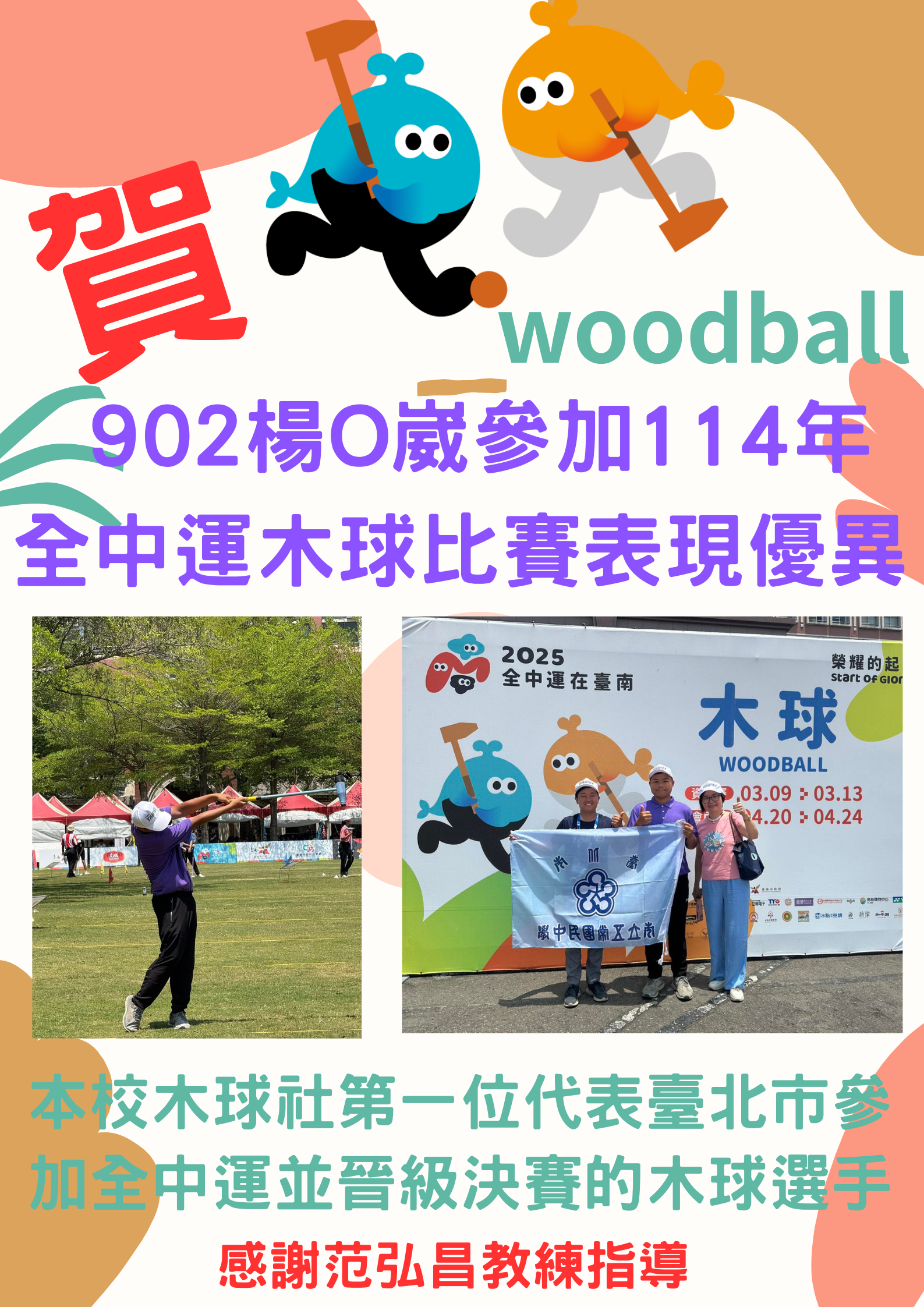 賀本校902楊O崴選手晉級114年全中運木球項目國男個人桿數賽前12強決賽
