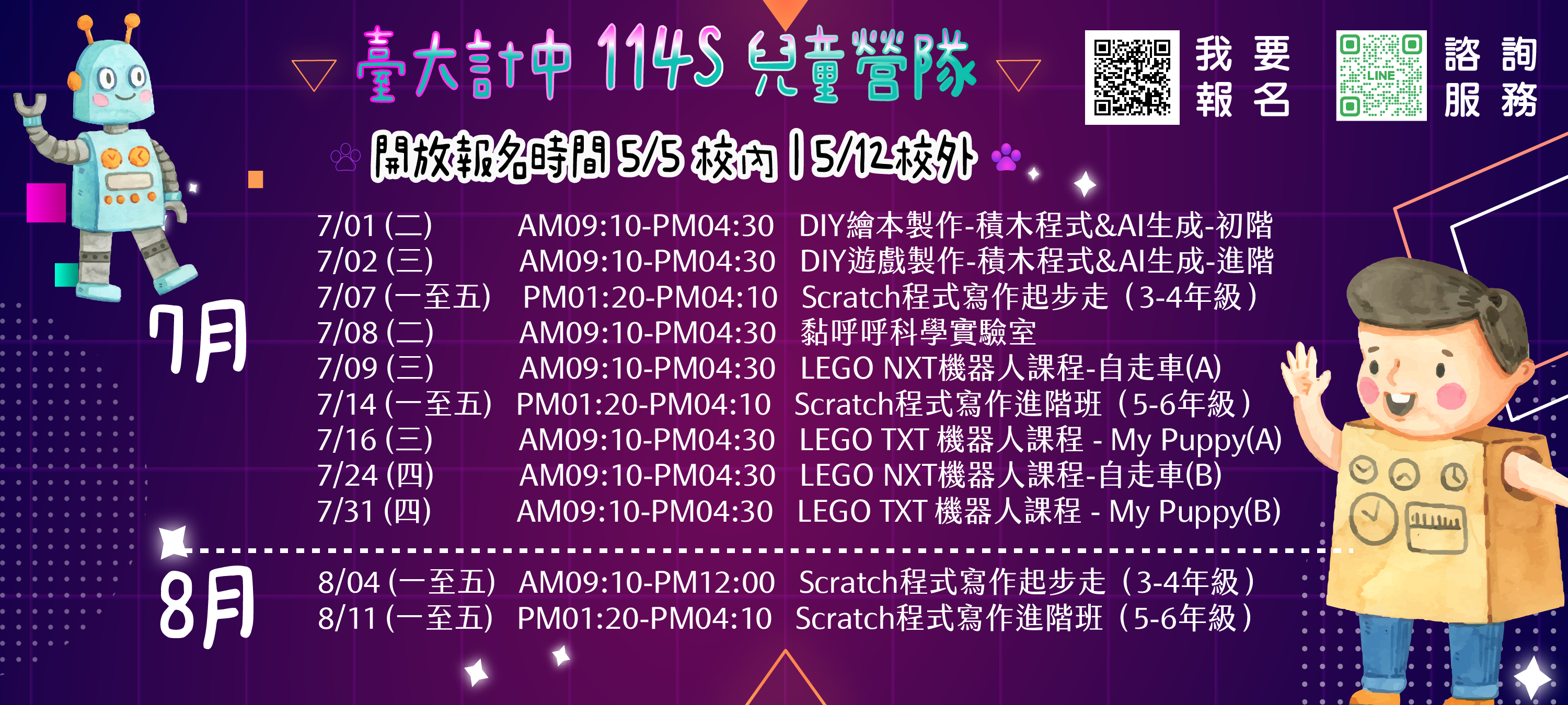 統計分析、文書處理、暑假兒童營隊系列,活動海報與課